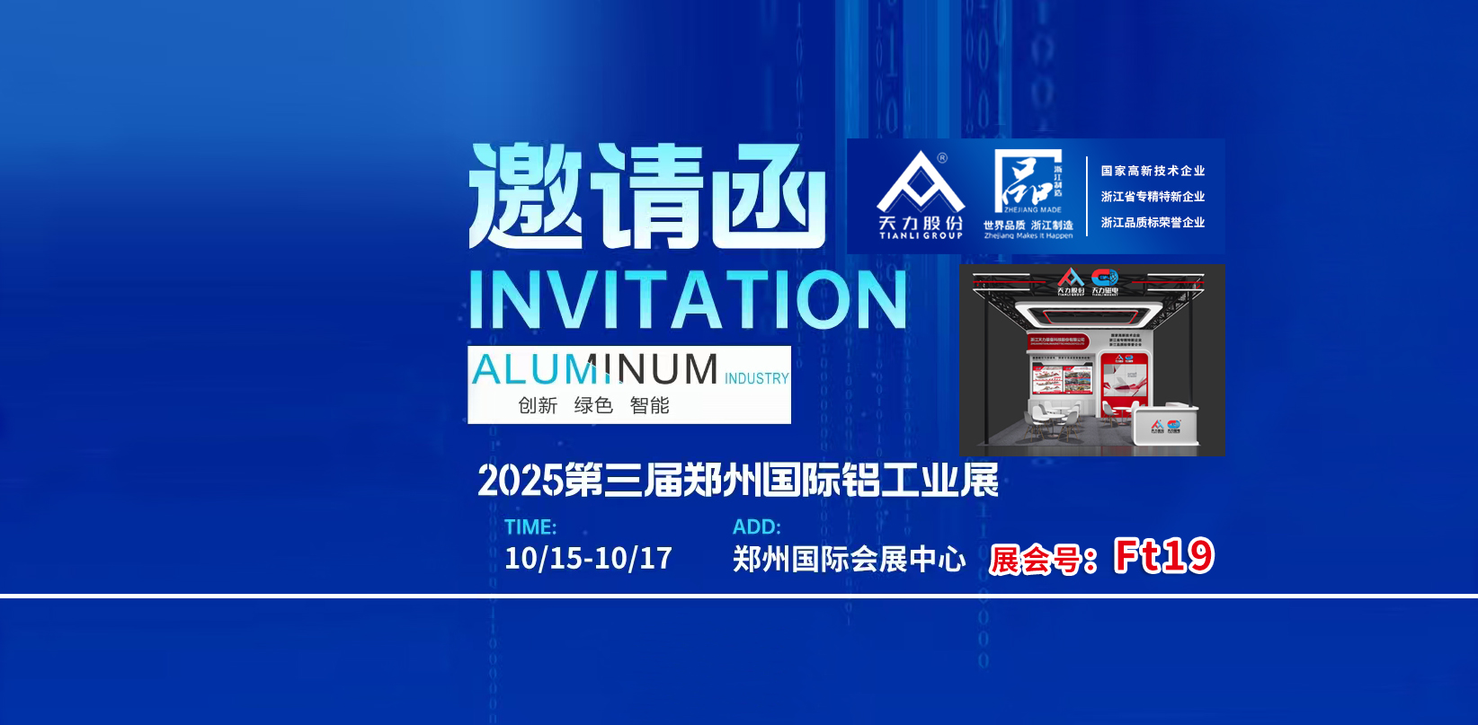 邀請函丨天力股份與您相約2025第三屆鄭州國際鋁工業(yè)展,10月15日展位號FT19!