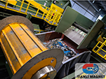 該設(shè)備主要用于玻璃、橡膠、廢鋼、廢鐵等分選線,既可以回收有用鐵質(zhì),也可分離混入物料的鐵雜質(zhì)。由于原料中的尖銳鐵質(zhì)或者其他物料對(duì)輸送機(jī)皮帶易造成損害,所以不適宜用自卸式除鐵器和普通磁滾筒。所以,我們?cè)谝话愦艥L筒的基礎(chǔ)上進(jìn)行了改進(jìn),滾筒表面做特殊處理,能防止尖銳的鐵件等對(duì)筒皮造成傷害。