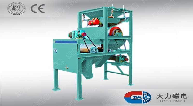 本產(chǎn)品是經(jīng)振動給料機從磁選滾筒上部進料的一種半磁敞開式結(jié)構(gòu)磁選設(shè)備; 磁場強度800-8000Gs可選,吸鐵能力大,永磁磁系,耗能??;設(shè)備根據(jù)情況,選用單級或者多級磁選,分選效果好。