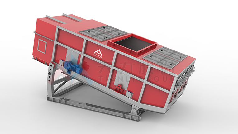 物料進(jìn)入彈跳篩后,在振動力的作用下,沿傾斜的篩板向前輸送,粒徑小于80mm的物料從篩板的網(wǎng)孔中漏下而分選出來,剩余垃圾中大于80mm的輕質(zhì)物在篩板振動作用和摩擦雙重作用下向前拋送,而大于80mm重質(zhì)物則順著傾斜的篩板向下溜下,通過該篩分過程,將三種垃圾分選出來并相應(yīng)進(jìn)行后續(xù)處理。